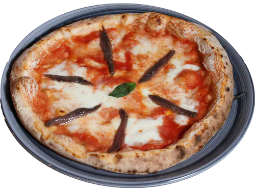 Mutti tomato sauce, fior di latte cheese, anchovies cantabrico, basil, extravergine olive oil.