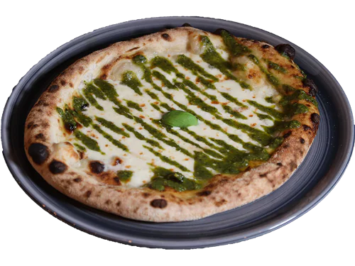 Fresh basil pesto, fior di latte cheese, stracchino cheese, extravergine olive oil.
