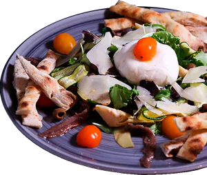 Fior di latte cheese, tuna sauce, black angus’ roast beef, misticanza, slices of parmisan seasoned 24 months, balsamic vinegar of Modena.